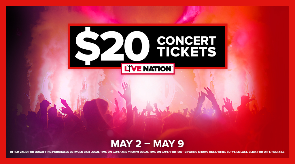 Visit livenation.com/20ticket for more information and to purchase tickets.